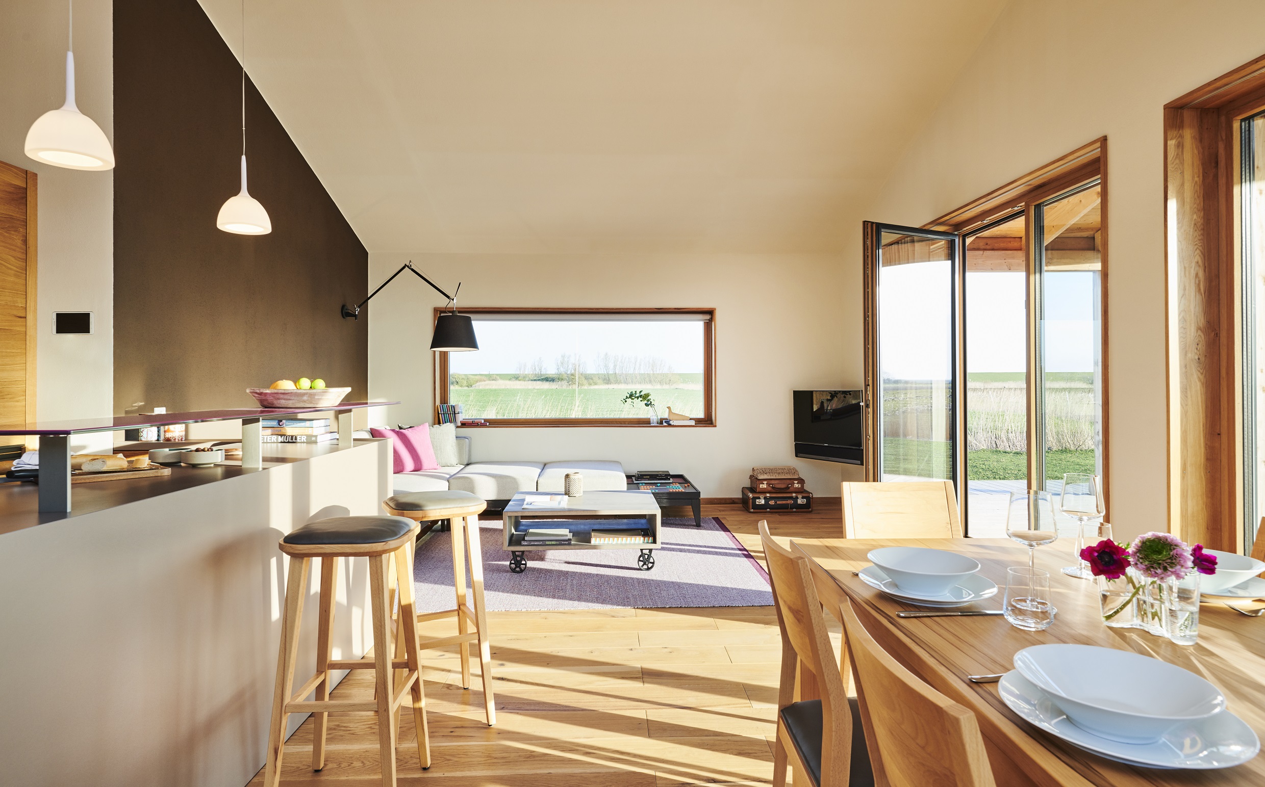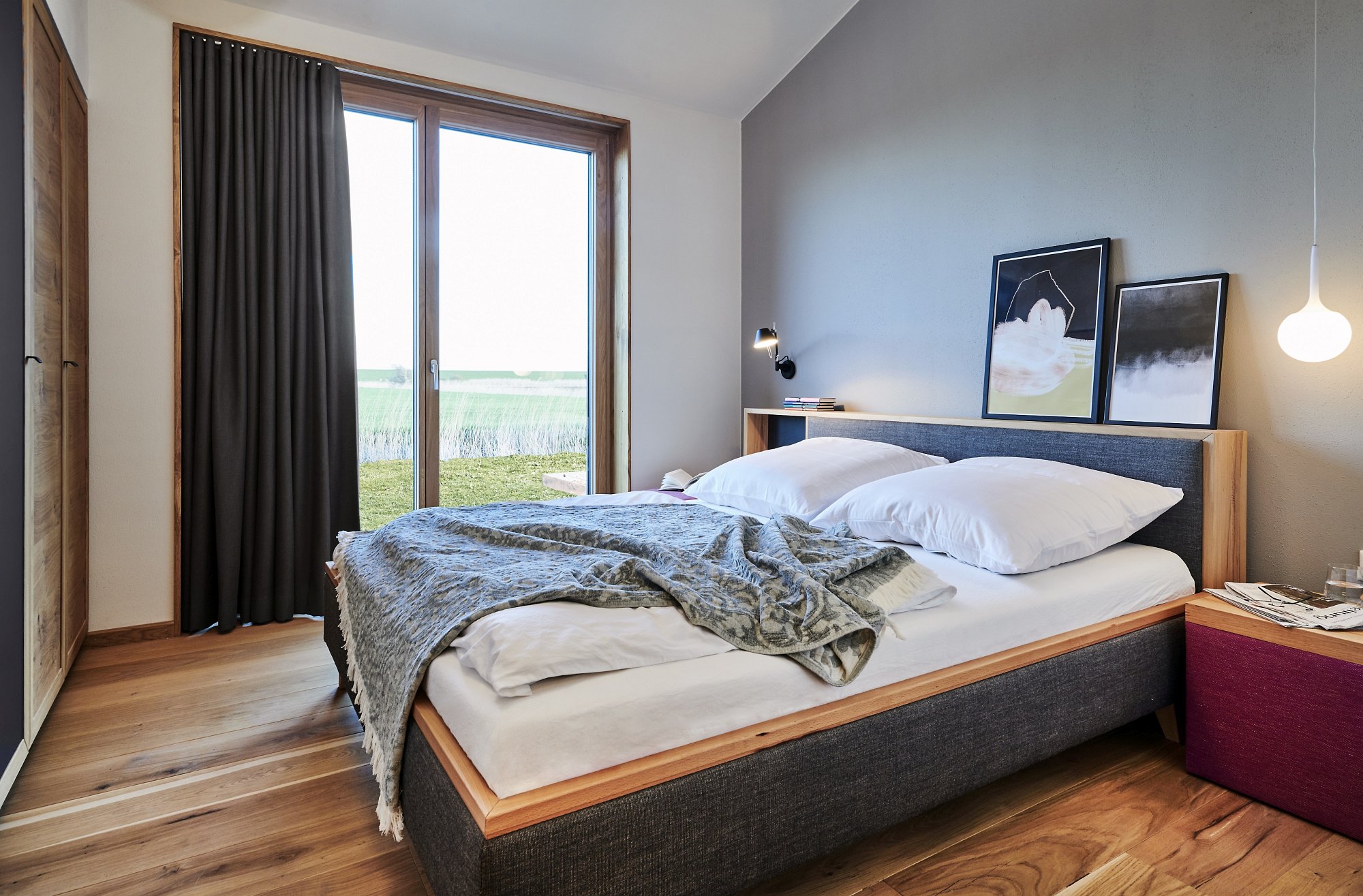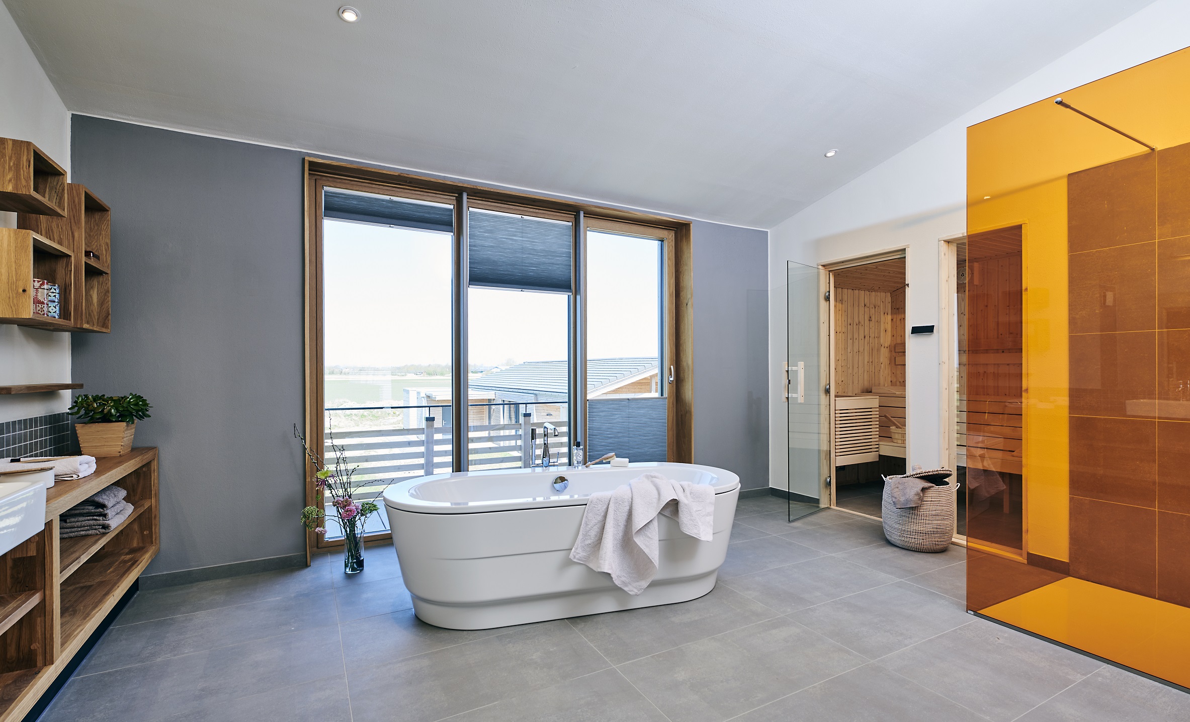 Naast de gezonde wandverwarming bieden de huizen nog veel meer hoogtepunten, zoals eikenhouten vloeren, gezond massief meubilair, panoramavensters, buitensauna en natuurlijk de modernste techniek.