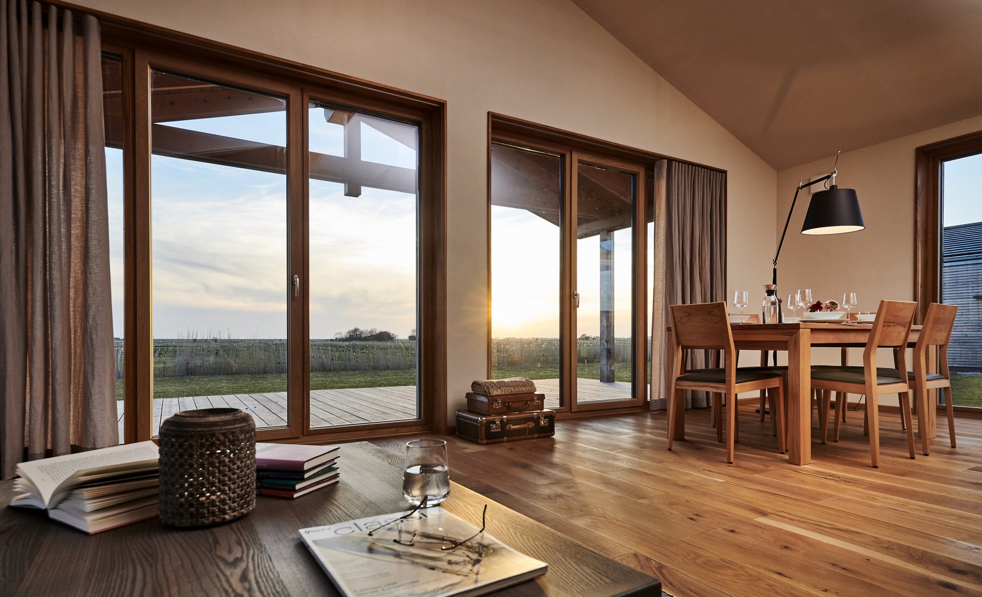 De 32 lodges en 6 grote chalets, bijna uitsluitend gebouwd met natuurlijke materialen, bieden een helder design, een nobele uitstraling en ruimte midden in de natuur en zijn het recept voor een bijzonder, vredig feel-good klimaat.