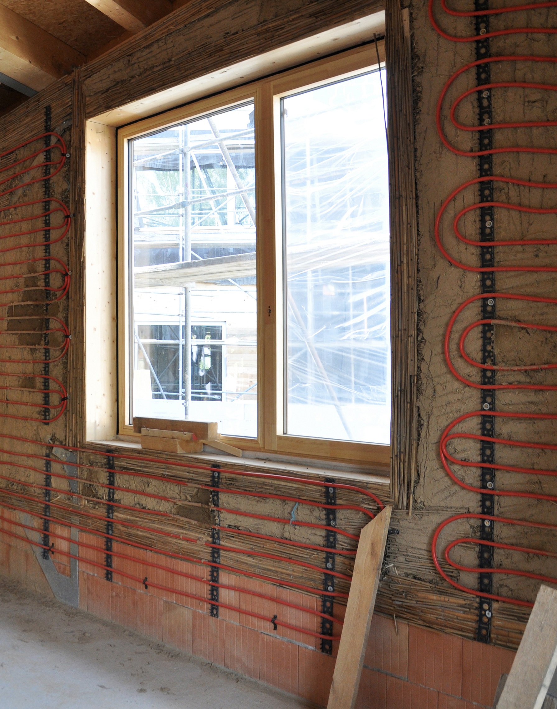 De installatie van WEM-wandverwarming in de buitenmuren van het houten gebouw draagt bij tot een evenwichtig verwarmingsconcept en wordt gecombineerd met vloerverwarming. De nieuwbouw van de naschoolse opvang, die harmonieus opgaat in het bestaande gebouw en de leerlingen van het naastgelegen schoolgebouw van de Freie Waldorfschule een visueel aangenaam uitzicht biedt, kreeg verschillende onderscheidingen. Er werden hernieuwbare en ecologische bouwmaterialen gebruikt, zoals hout, leem en stro. De wandverwarming past perfect in dit concept dankzij de ideale combinatie van het ruimteklimaat met leem en de energiebesparende lage-temperatuurwerking.