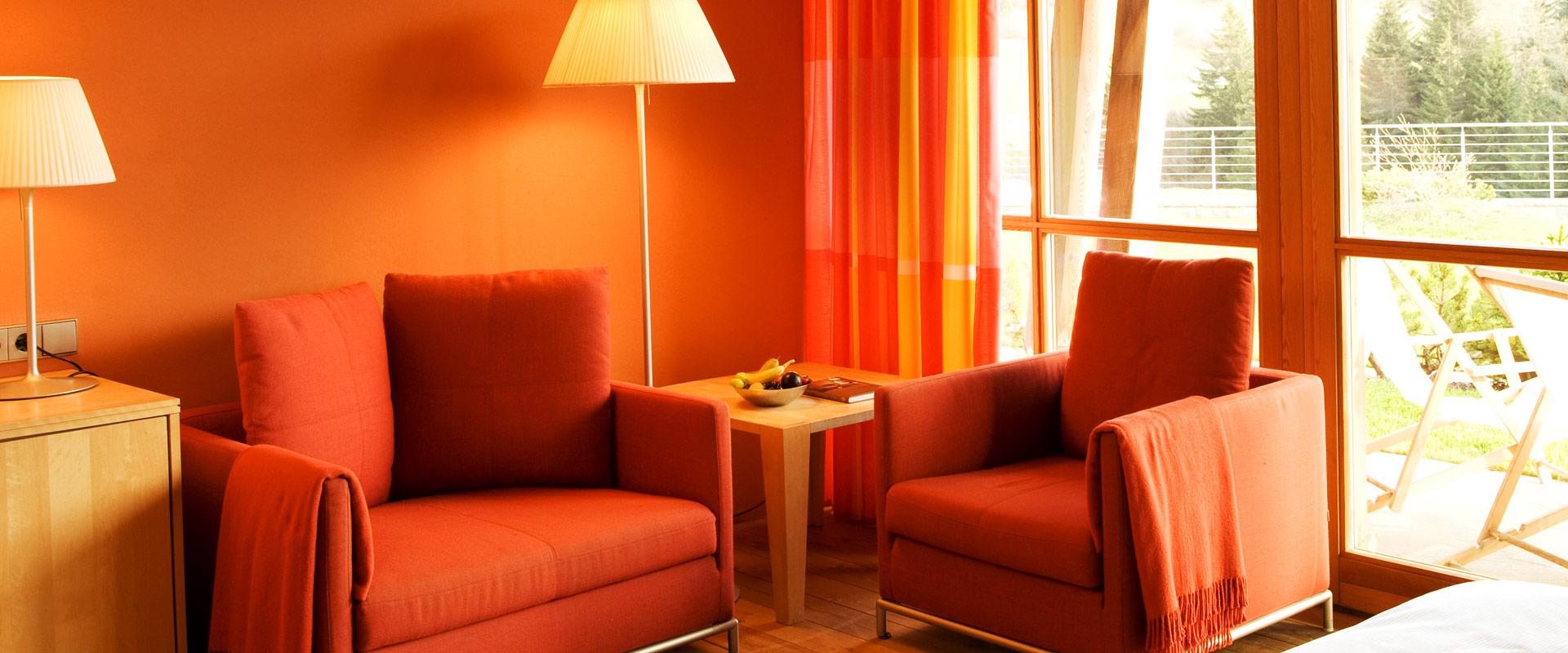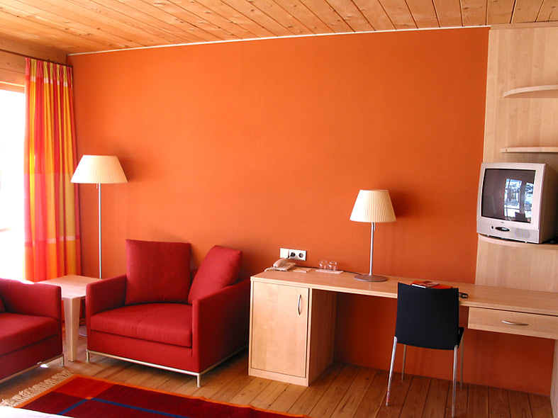 De kamers en suites worden verwarmd met de wandverwarming van WEM. In tegenstelling tot conventionele radiatoren, die de lucht verwarmen door deze voortdurend te circuleren, werkt de wandverwarming volgens het stralingsprincipe. De infraroodstraling die door de wanden wordt uitgezonden, is bijzonder aangenaam en verdraaglijk voor de mens - net als van de zon zelf. De combinatie van stralingswarmte en leem creëert een uniek comfortabel en gezond binnenklimaat. De lucht in de kamer behoudt zijn natuurlijke vochtgehalte en blijft grotendeels vrij van turbulentie. Schimmels en mijten hebben dus geen kans.