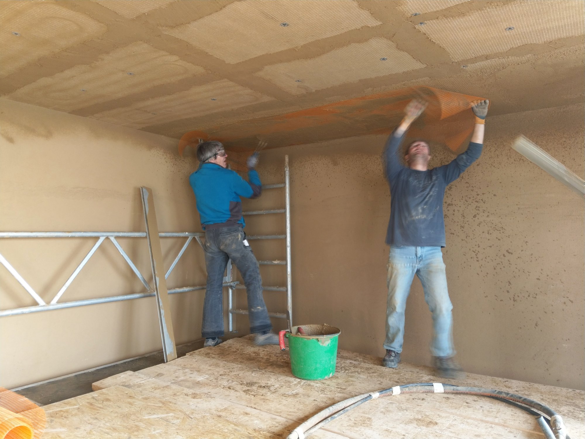 Een van de doelstellingen van het bouwproject was de superioriteit van natuurlijke bouwmaterialen op het gebied van wooncomfort aan te tonen en dit in de praktijk te demonstreren. Daarom werd het interieur volledig opgetrokken uit hout, kalk en lemen bouwmaterialen. Een bijzonder voordeel van deze bouwmaterialen is hun hoge diffusie- en sorptiecapaciteit, die een vochtregulerende werking heeft en voor een zeer comfortabel klimaat zorgt.
