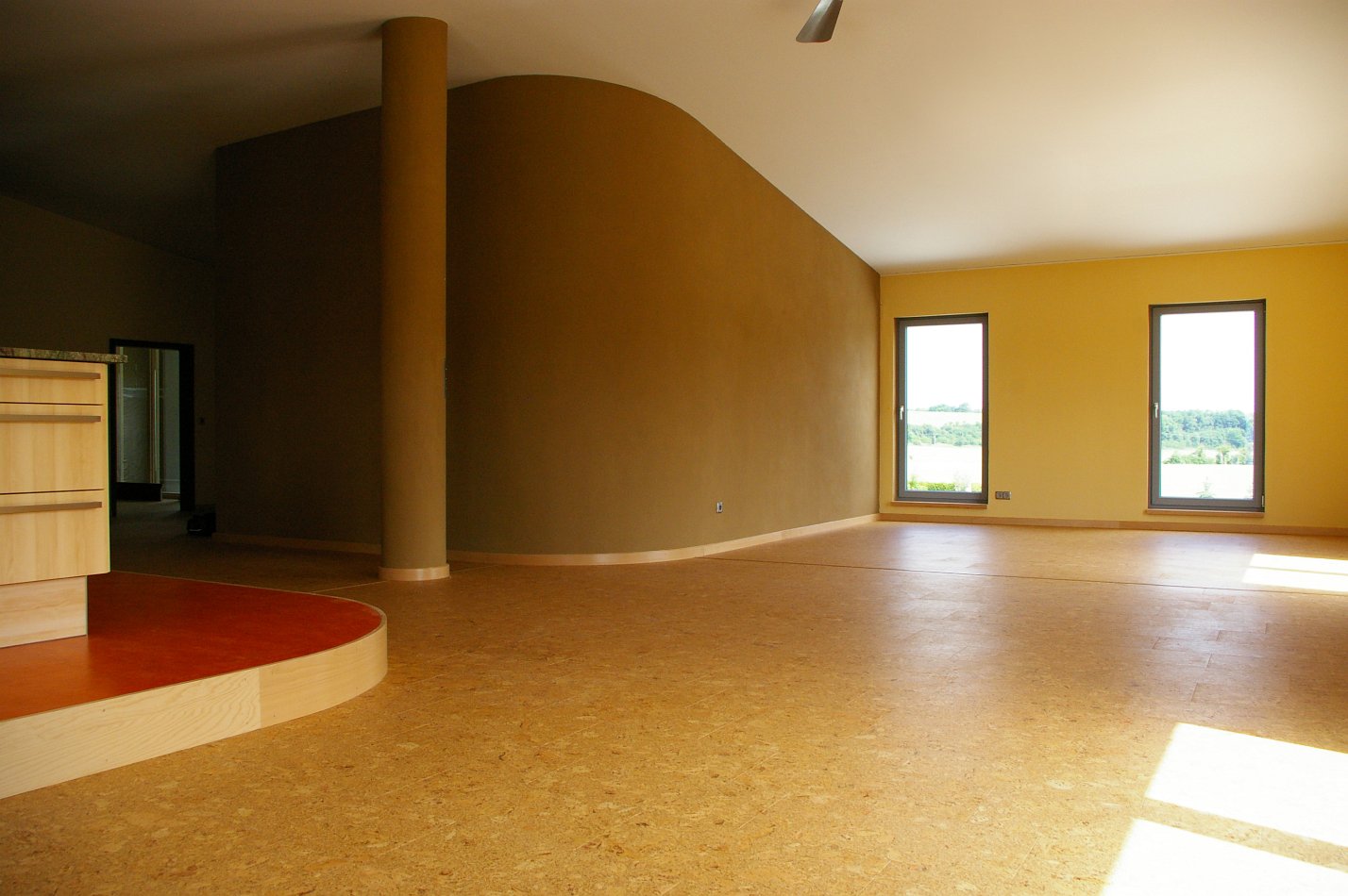 Om de ruime kamers met aangename stralingswarmte te verwarmen, kozen de eigenaren van het gebouw voor WEM-wandverwarming. Aangezien de stralingswarmte horizontaal en gelijkmatig wordt verdeeld in de grote en open ruimten en de warme lucht niet naar boven stijgt zoals bij convectieverwarming, kunnen de bewoners altijd genieten van een aangenaam binnenklimaat.