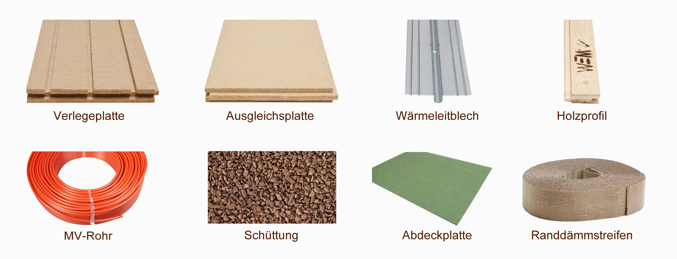 Het WEM droogbouwsysteem voor de vloer bestaat uit een 40 mm dikke houtvezelisolatieplaat, waarin warmtegeleidende metaalplaten en de WEM 16 mm-meerlaagse-compoundbuis worden gelegd. Het systeem is heel geschikt voor het leggen van houten vloerdelen en om te betegelen. Maar ook andere vloeren zijn mogelijk. Voor gebruik onder tegels, parket, laminaat of andere bekledingen is een gewichtverdelende laag nodig. Net als bij onze wand- en plafondverwarmings- en plafondkoelsystemen, voeren wij voor alle bouwprojecten de calculatie en het ontwerp uit. Neem contact met ons op!